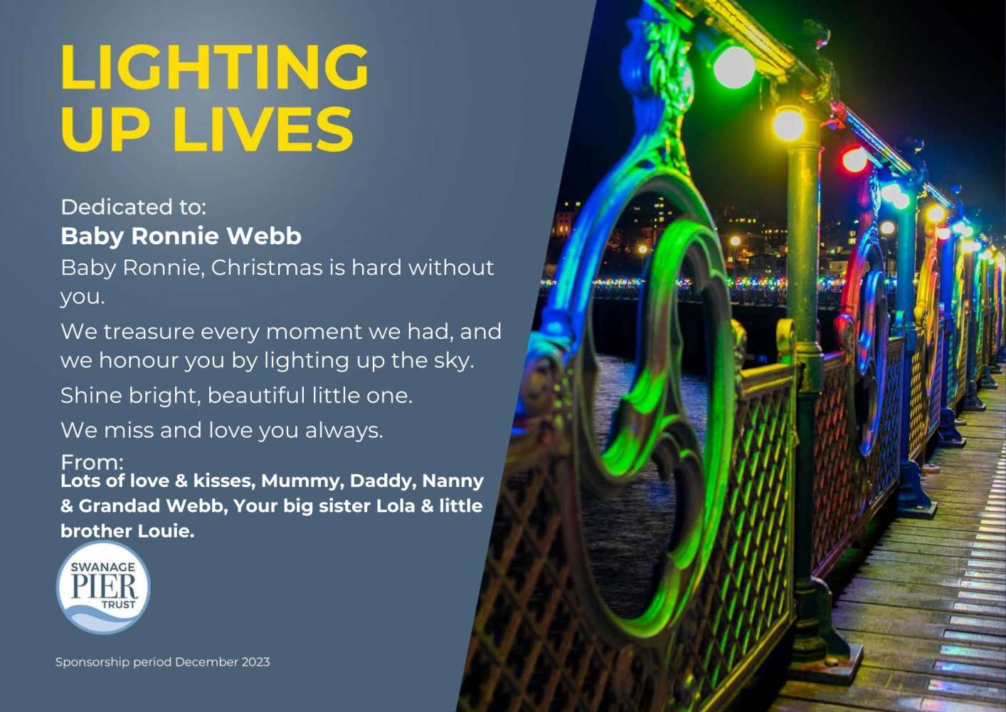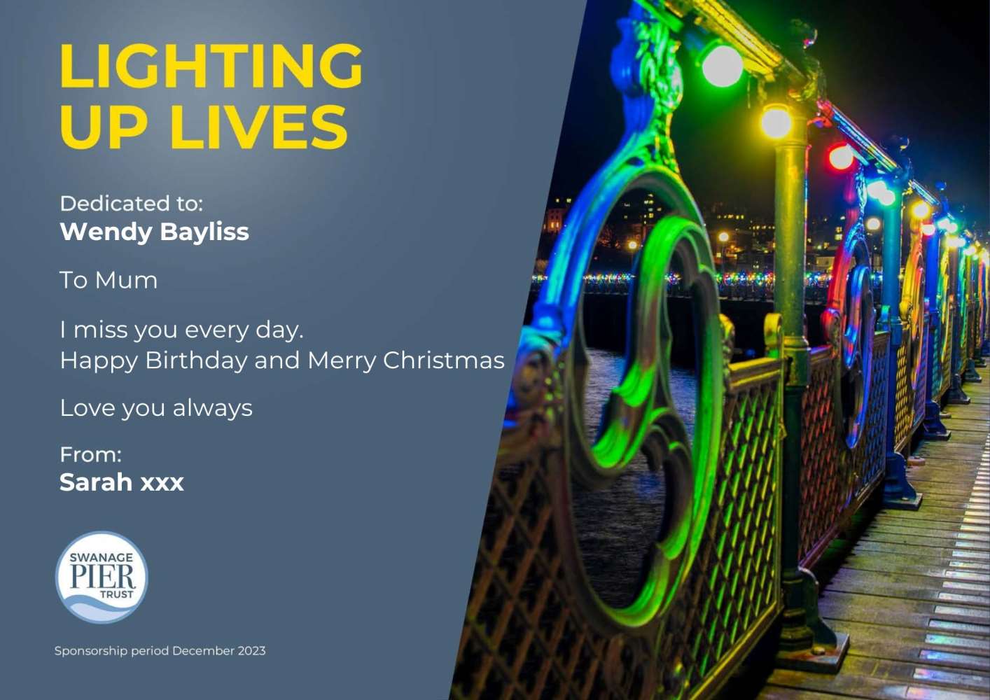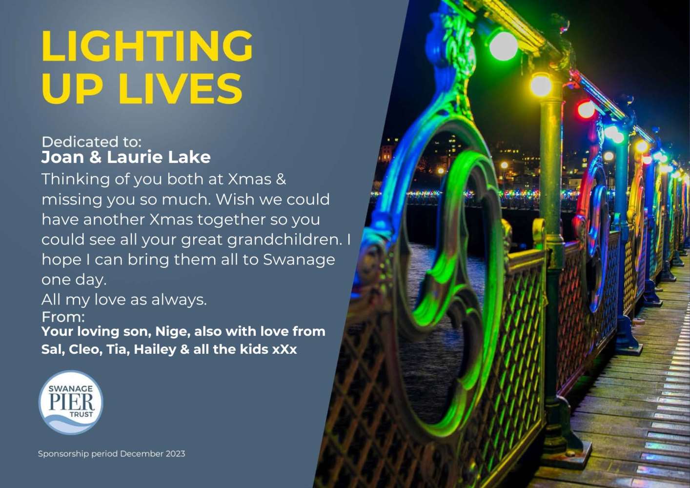 A light will shine brightly on Swanage Pier for everyone named below.